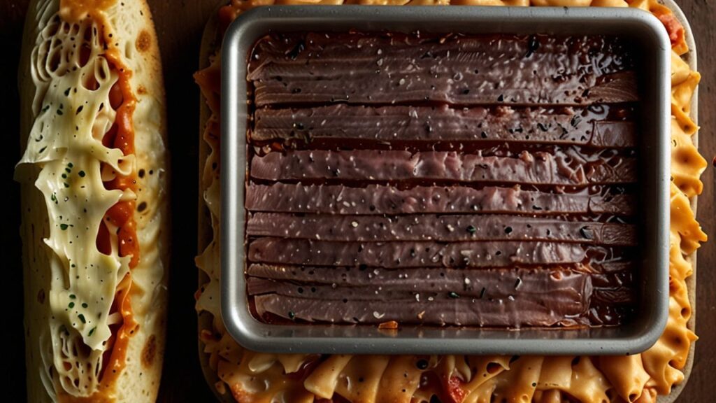 Neat layering turns pieces into cool plates. First, spread a dash of meat sauce on the pan base. Keeps noodles from sticking hard, so smart. Set one sheet of lasagna noodles on a juice bed. Then put cheese on the noodles. Dot with bonus meat sauce plus mozzarella spots. Redo this—noodles, cheese, meat, cheese—near the pan top. Last coat? Noodles wrapped with sauce plus blobs of cheese melt. Top cheese bakes to a bright gold shell.